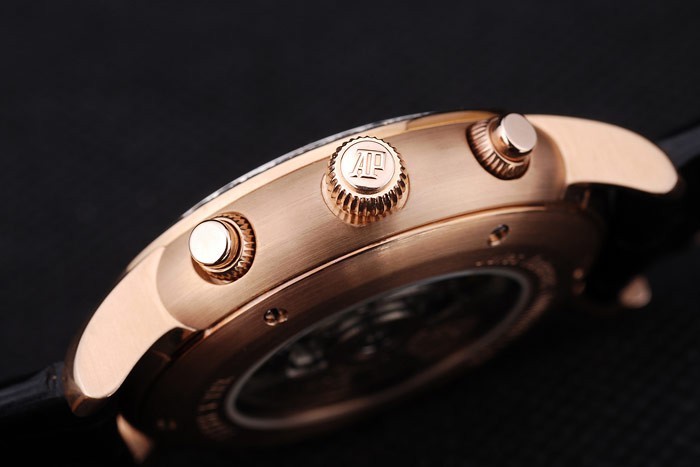 brățară: curea de piele crocodilă negru cu căldură Embossed Audermars Numele și logo-ul și un Loguet Audemars înscris 18K trandafir-aur placat flip-peste cârlig Clapetă: Bratara Lungime: 245 X 22 mm