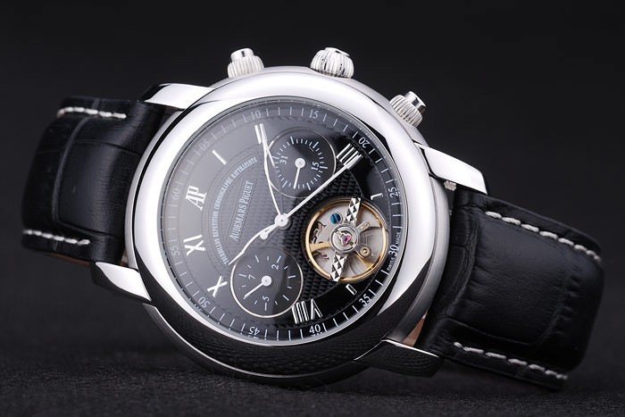 Bratara: Cureaua de piele de crocodil negru cu cusatura alba si caldura Embossed Audemars Numele si logo-ul si un AUDEMARS Piguet inscris inoxidabil din otel inoxidabil Flip-Over Claspa