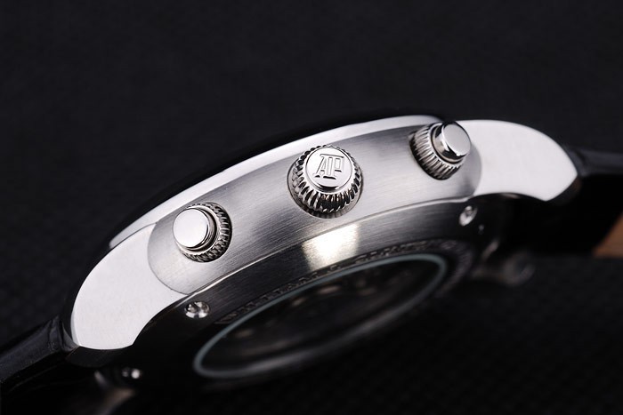 Crown: Oțel inoxidabil Coroana cutwork cu logo-ul Audemars Piguet și două coroane de împingere mai mici pe ambele părți ale acestuia