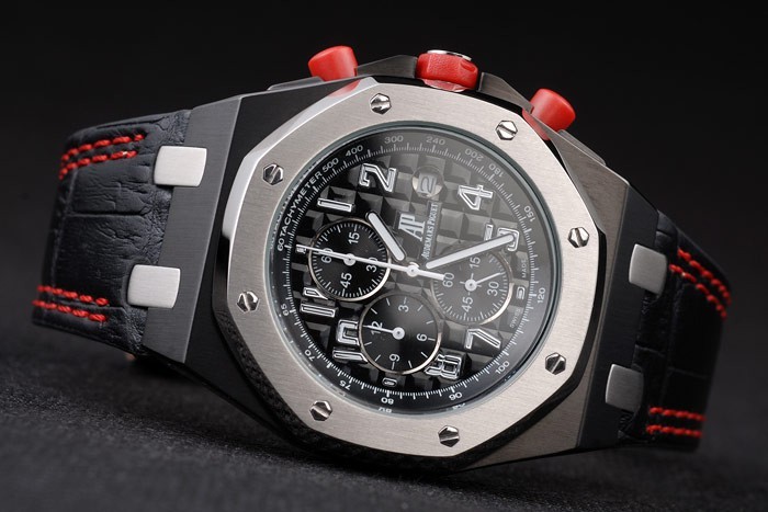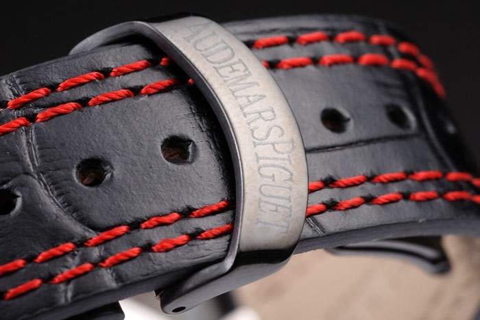 Brățară: Heat Embossed Audemars Piguet Black Crocodile Breast cu cusături roșii și audemars Piguet Gravat cu ioni Întârziere cu brățară – Lungime: 220 x 25 mm