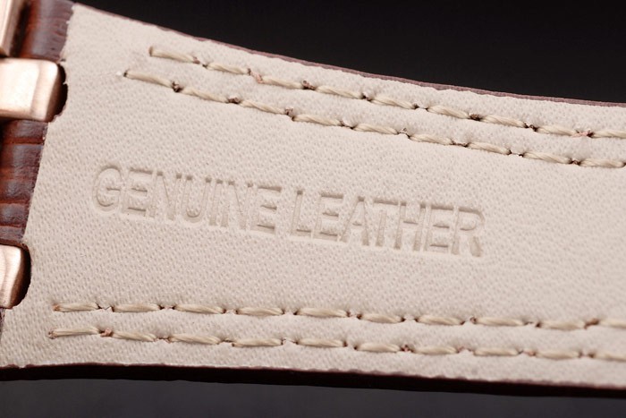Bratara: Heat Embossed Audemars Brown Brown Crocodile Curea cu cusatura dubla alba si audemars Piguet gravat Rose-aur placat pliabil Clapeta