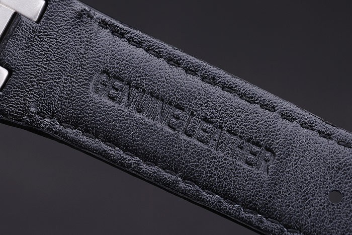 brățară: cureaua de piele crocodilă negru cu cusatura albă și căldură embossed Audemars Numele și logo-ul și un AUDEMARS Piguet inscris din oțel inoxidabil din oțel inoxidabil Flip-Over Clinspa