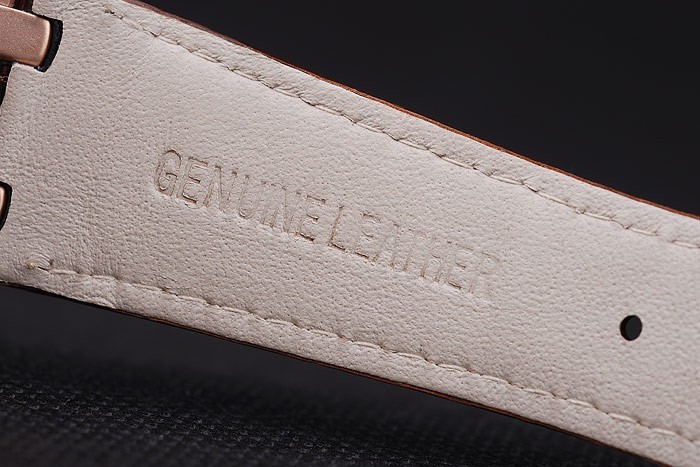 brățară: brățară de piele crocodilă cu cusătură albă cusături și căldură embossed Audemars Numele și logo-ul și un auudesars Piguet inscripționat trandafir-aur placat flip-peste cârlig clapetă