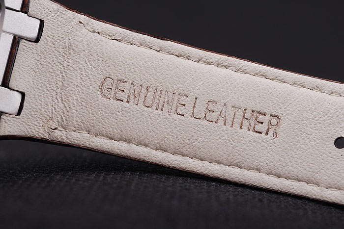 brățară: curele de piele crocodilă maro cu coasere și căldură cuplată de căldură Audemars Numele și logo-ul și un AUDEMARS Piguet inscris din oțel inoxidabil din oțel inoxidabil Flip-Over Clapep