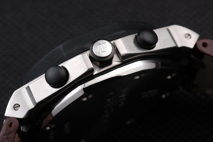 brățară: Heat relief Audemars Piguet maron curea din piele de crocodil cu cusături duble alb și Audemars Piguet gravat din oțel inoxidabil extensibil în agrafă