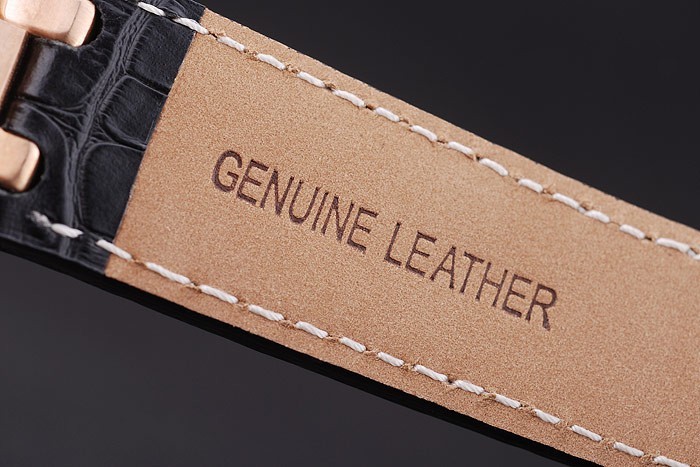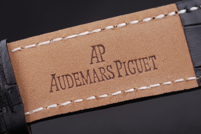 brățară: cureaua de piele de crocodil negru cu cusatura albă și căldură embossed Audemars Numele și logo-ul și un AUDEMARS Piguet inscripționat Rose-Gold Plated Flip-Over Clot Clasp
