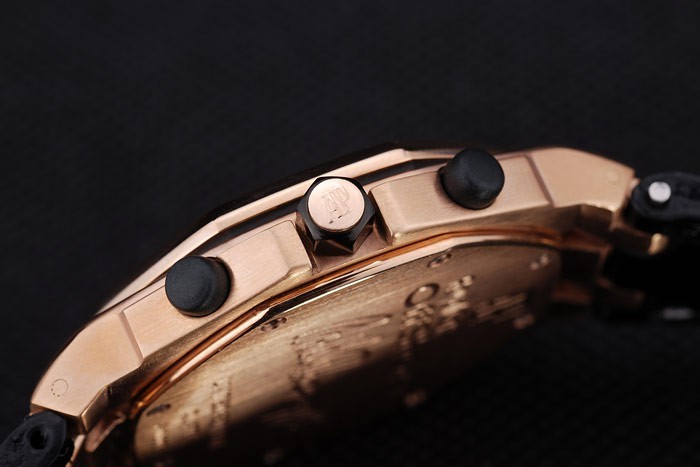 Crown : Rose-Gold Audermars Piguet Logo Coroana cu tăiere cu tăiere cu două coroane mici cu două mici coroane de ioni pe ambele părți ale lui