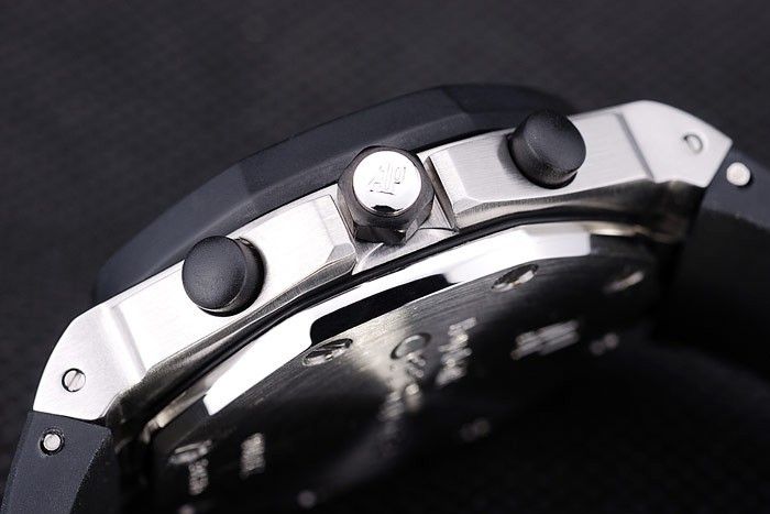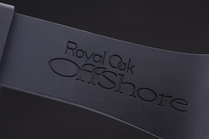 Caz: Carcasă din oțel inoxidabil periat < Br> Bratara: Curea de cauciuc negru cu căldură Embossed Audemars Piguet Royak Royak Stampul offshore Stamp și un AUDEMARS Piguet inscripționat din oțel inoxidabil Flip-Over Claspe