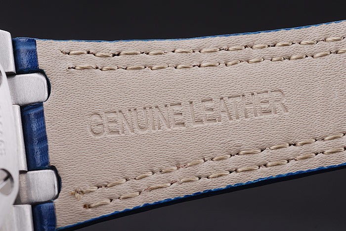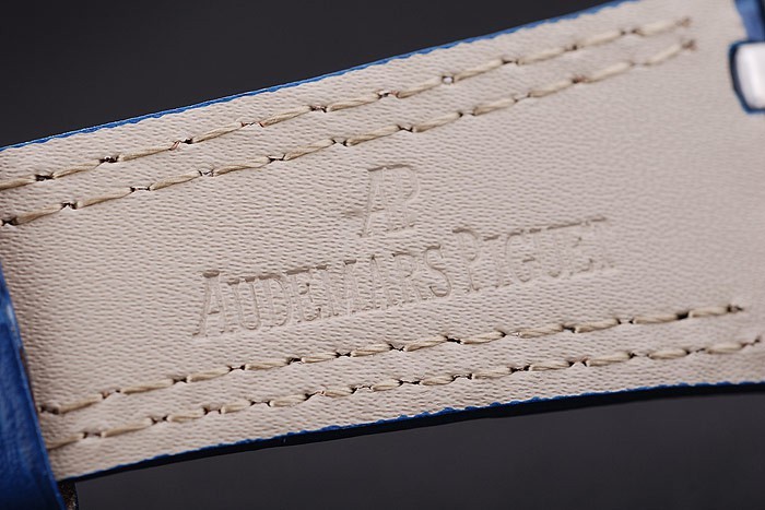 Cutie: Carcasă din oțel inoxidabil periat < Br> Bratara: Curea de piele crocodilă albastră cu cusături dublu și căldură eduremars și logo-ul și logo-ul și un Audemars Piguet inscripționat inoxidabil din oțel inoxidabil Flip-Over Clinsp