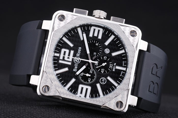 Bratara: Bratara: Bell & Ross Logo si codul de produs Cureaua de cauciuc negru cu BR inscrise inoxidabila din otel inoxidabil Clapeta