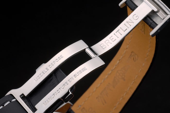 Crown: Coroana de tăiere din oțel inoxidabil din oțel inoxidabil cu logo-ul Breitling și o coroană mică de apăsare pe ambele părți a acestuia