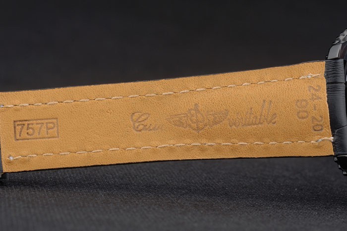 Brățară: Breitling Heat Black Black Crocodile curele de piele cu cusut albă și logo-ul grafat din oțel inoxidabil din oțel inoxidabil Clapetă