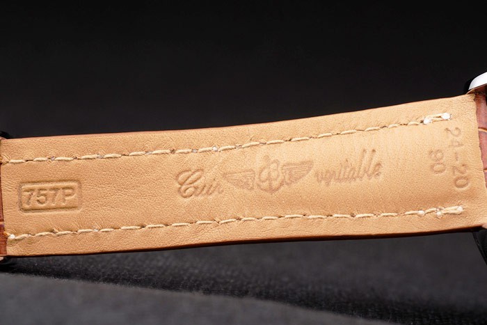 Caz: Carcasă din oțel inoxidabil lustruit < BR> Bratara: curea de piele crocodilă maro cu brevet de brevet de cusătură și căldură curete de brățară și gravate oțel inoxidabil Fold în clapetă cu logo-ul de brățară pe partea de sus