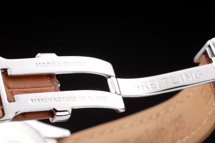Crown: 18K Rose-Gold Oțel inoxidabil Coroana cu logo-ul cu logo-ul Breitling și două coroane mai mici pe ambele părți ale lui