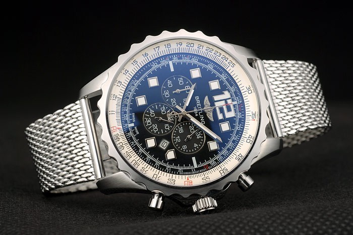 Crown: Cutwork lustruit din oțel inoxidabil Coroana cu logo-ul Breitling și două coroane mici cu apăsare rotundă pe ambele părți ale acestuia