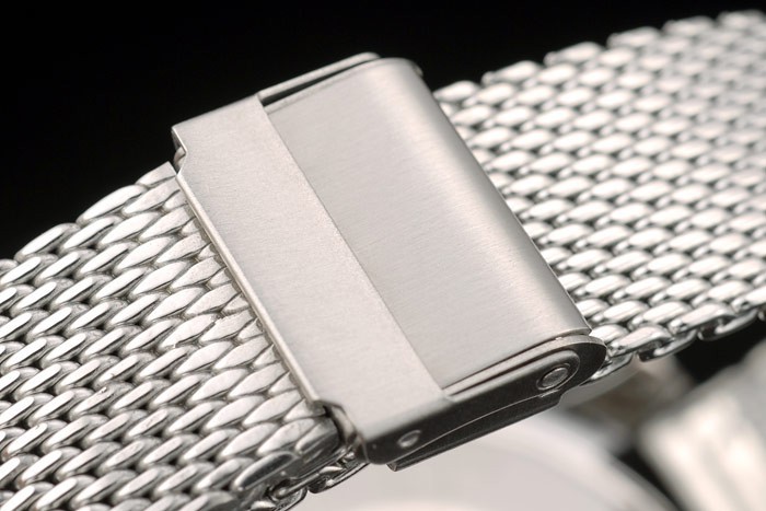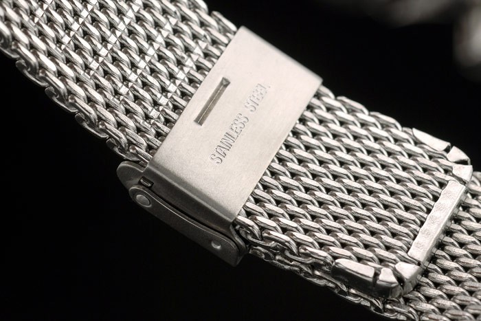 Acest ceas are o sticlă. Culoarea feței va apărea diferite culori, în funcție de modul în care lumina cade pe oțel inoxidabil: Snap-in din oțel inoxidabil lustruit cu gravuri transoceene