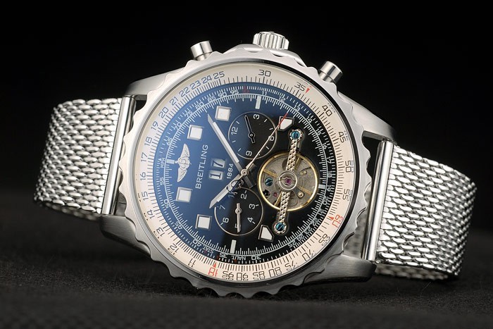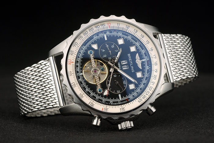 Crown: Coroana de tăiere din oțel inoxidabil lustruit cu logo-ul Breitling și două Push-buton rotund mic coroane de pe ambele părți ale acestuia