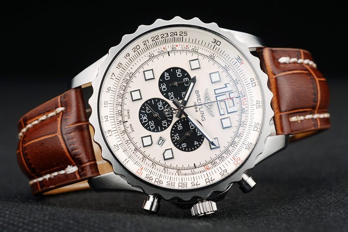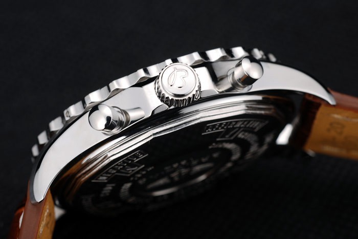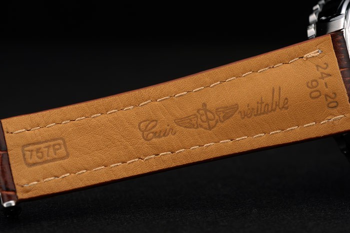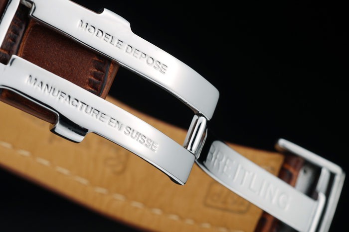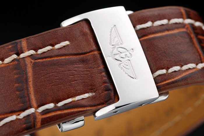Caz: Carcasă din oțel inoxidabil lustruit < Br> Bratara: Bratara: Breitling Embosat Nume si logo Brown Crocodile Piele Curea cu fire albe Stiching si logo Gradov Otel inoxidabil Fold-in Clapeta