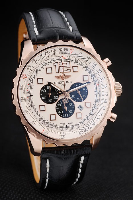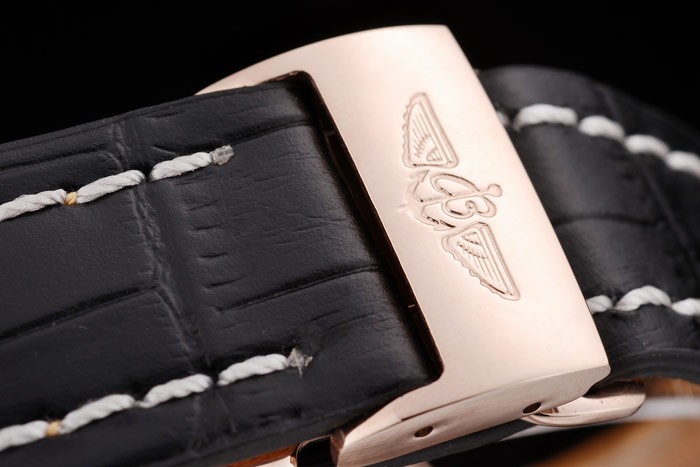 Bratara: Heat Embossed Breitling Nume si logo Black Crocodile din piele cu fire albe Stiching si logo-ul gravat Rose-aur placat pliabil Clapeta