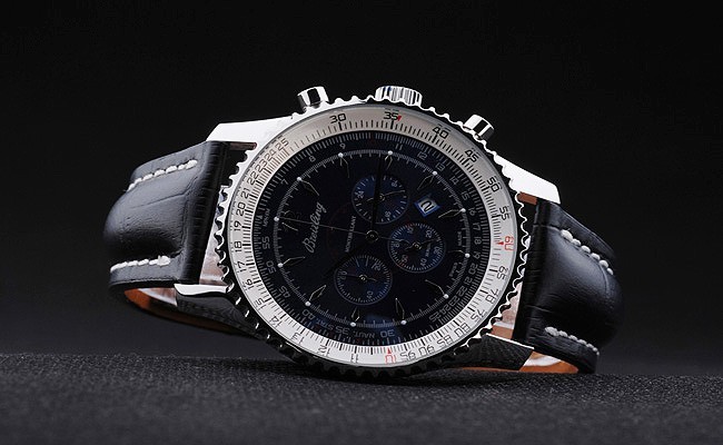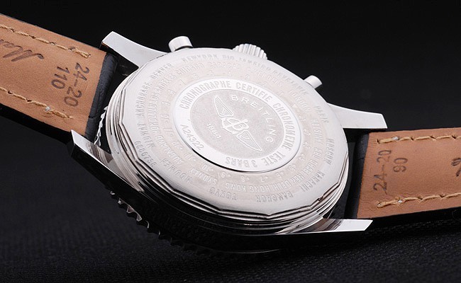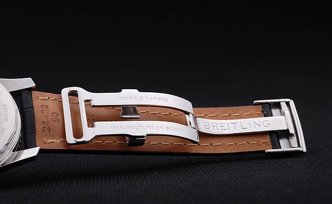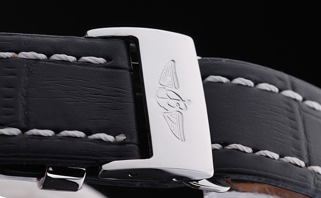 Brățară: Curea de piele de crocodil negru cu brevet de brevet de cusătură și căldură Embossed Breitling Gravings și gravat oțel inoxidabil Fold în clapetă cu logo-ul de brățară pe partea de sus