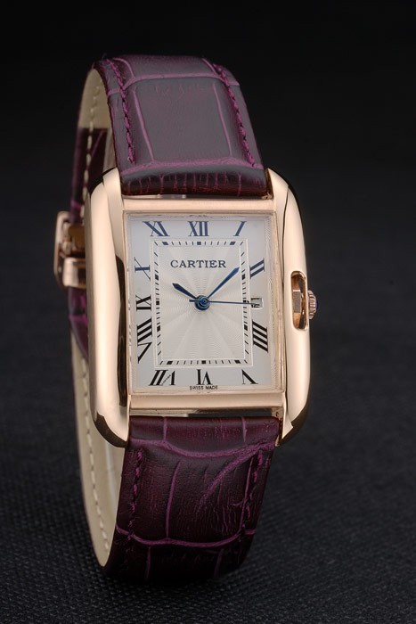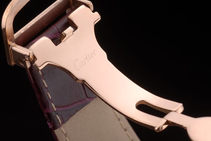 Brățară : Cartier Heat Heat de căldură Purple Purple Leather curea cu înclinare Rose-Gold Placat cu clapetă Clapetă