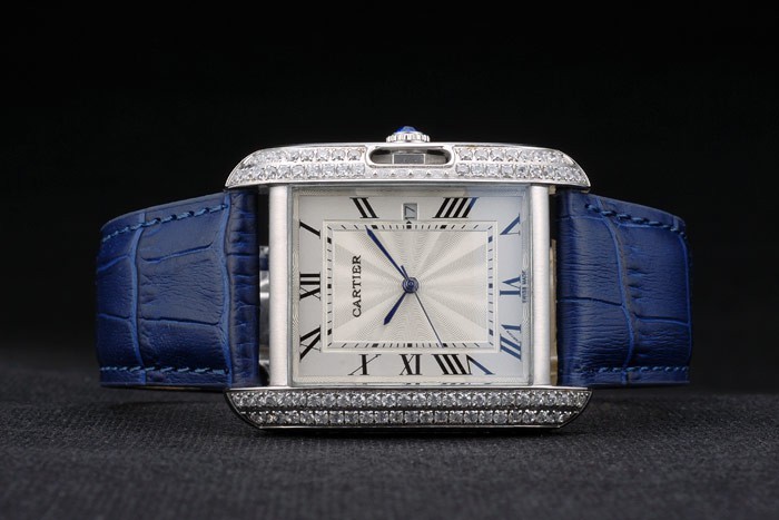 Brățară: Cartier Heat Embossed Blue Blue Crocodile din piele cu oțel inoxidabil din oțel inoxidabil Budaca