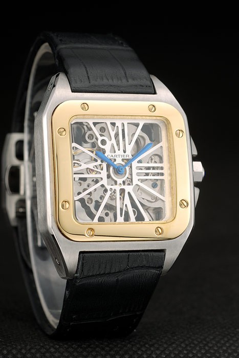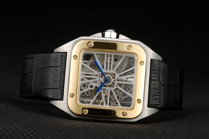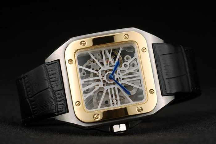 Bratara: Bratara: Cartier Black Crocodile Black Crocodile cu o bucată de oțel inoxidabil cu oțel inoxidabil cu buton de apăsare pe partea laterală
