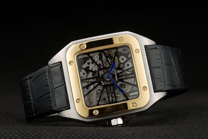 Bratara: Bratara: Cartier Black Crocodile Black Crocodile cu o bucată de oțel inoxidabil cu oțel inoxidabil cu buton de apăsare pe partea laterală