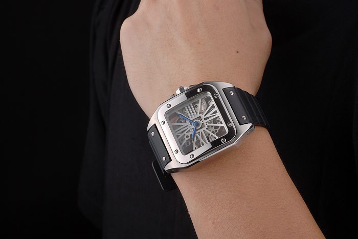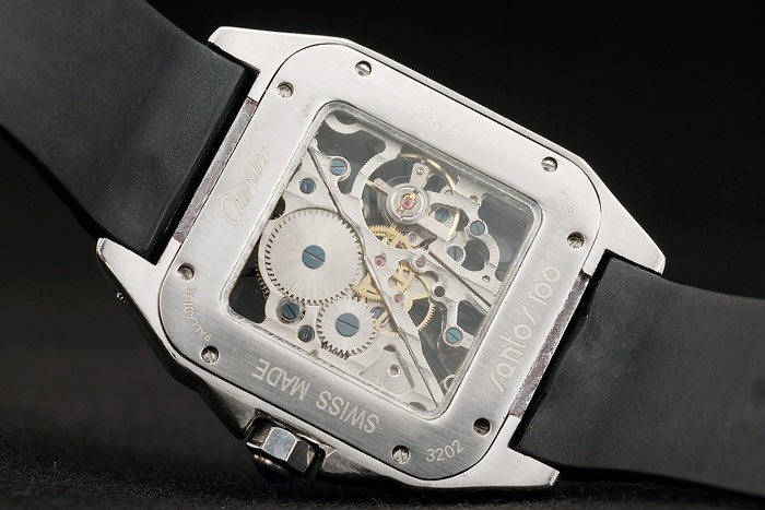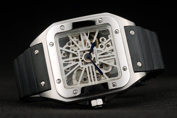Bratara: Curea de cauciuc negru cu Cartier inoxidabila din otel inoxidabil din otel inoxidabil