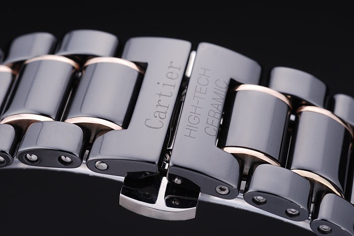Caz: Caz ceramic negru Bratara: Ceramica neagra si brățară de trandafir-aur cu Cartier High-Tech Ceramic Graved Hidd-Langherie Lungime: Bratara Lungime: 196 x 22 mm