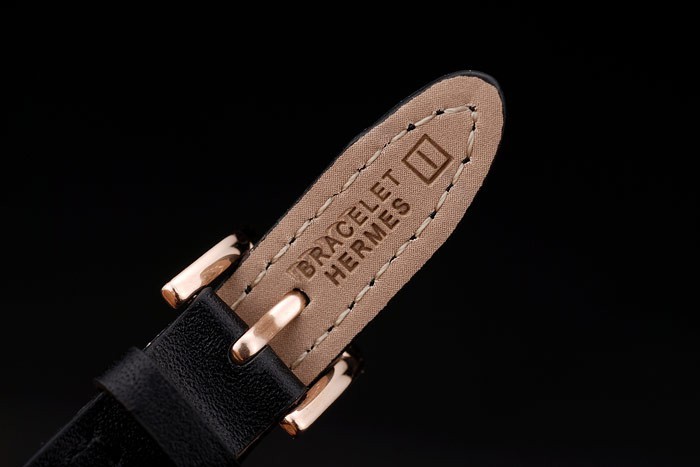 Brățară: curea de piele neagră alungită cu ștampila de căldură și Hermes Hermes brățară gravă Rose-aur placat cu cârlig Clapetă