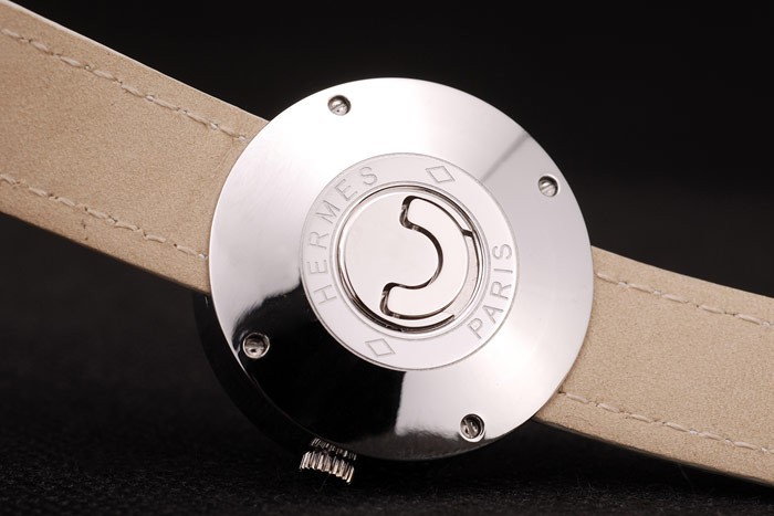 Caz: Carcasă din oțel inoxidabil lustruit < br> brățară: curea din piele albă cu căldură embossed brățară hermes și hermes gravat lustruit oțel inoxidabil cârlig-cataramă clapetă