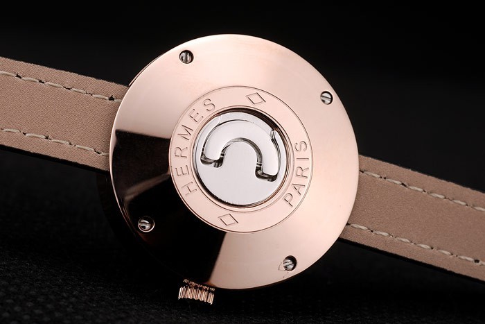 Înapoi: Rose-Aur Plated înșurubat înapoi cu centru din oțel inoxidabil și Hermes Paris Graving