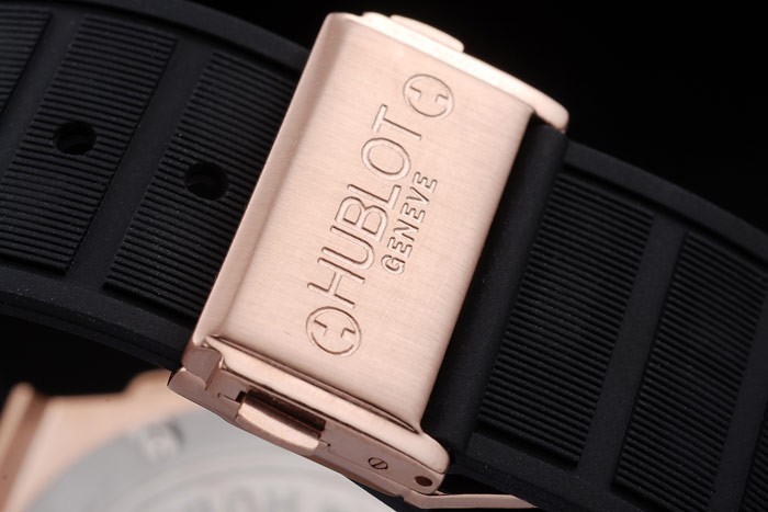 Brățară: Bandă de cauciuc neagră texturate cu încovoiere cu buzunar Rose-Gold Clasp și Gravuri Hublot