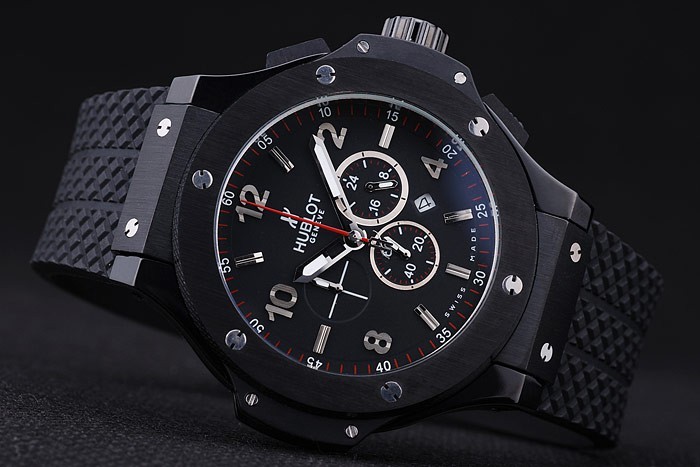 Bratara: Bratarata: Banda de cauciuc neagra texturate cu clema cu buzunar placat cu ioni si gravuri Hublot