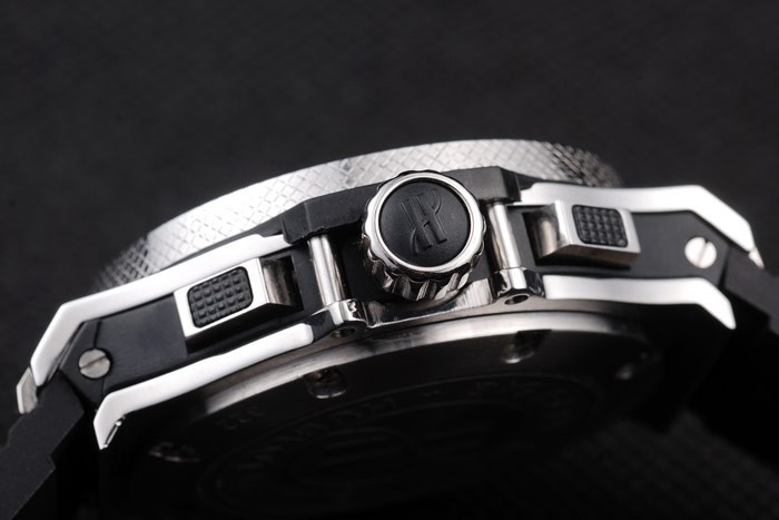 Crown: Coroana din oțel inoxidabil din oțel inoxidabil cu gravură „H” și două coroane dreptunghiulare pe ambele părți , toate împodobite cu garnituri de cauciuc negru