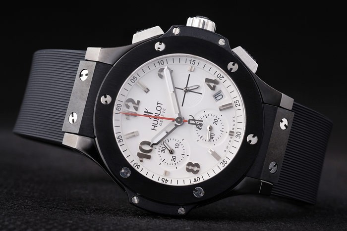 Caz: oțel inoxidabil cu ioni: Br > Bratara: Bratarata: Banda de cauciuc neagra texturata cu clapeta cu buzunar placat cu ioni si gravuri HUBLOT