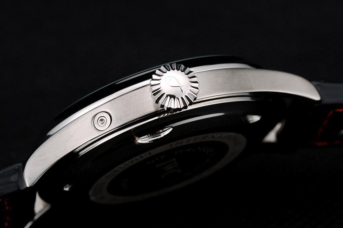 Cutie: Carcasă din oțel inoxidabil < Br> Bratara: Bratara: Black Crocodile Black Black Crocodile cu fire de cusătură portocaliu și gravat Oțel inoxidabil cu oțel inoxidabil