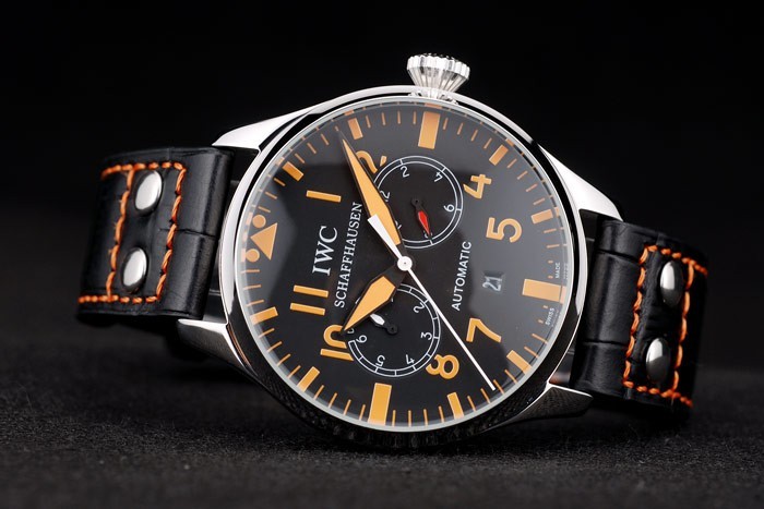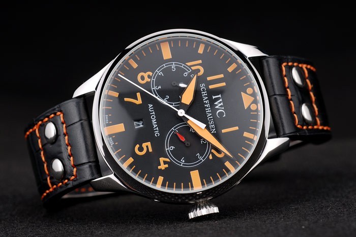 Cutie: Carcasă din oțel inoxidabil < Br> Bratara: Bratara: Black Crocodile Black Black Crocodile cu fire de cusătură portocaliu și gravat Oțel inoxidabil cu oțel inoxidabil
