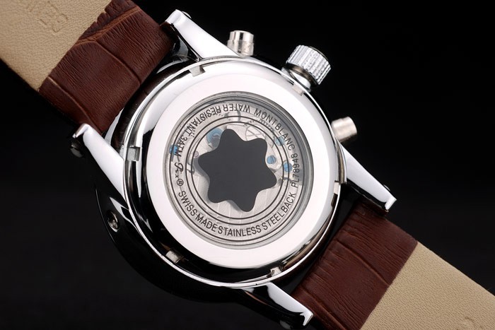 Crown: Coroana de tăiere din oțel inoxidabil lustruit cu logo-ul Montblanc și două butoane din oțel inoxidabil lustruite de pe ambele părți ale lui