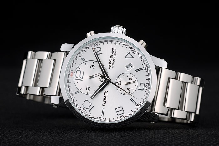 : oțel inoxidabil lustruit cutwork coroana cu MontBlanc logo-ul și două din oțel inoxidabil lustruit împingere coroane buton de pe fiecare parte a acestuia
