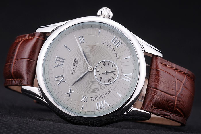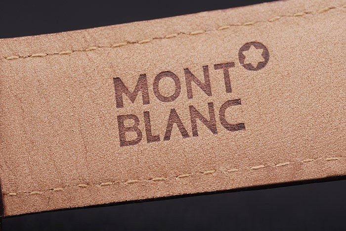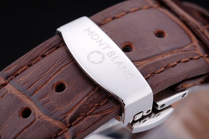 Bratara: Heat Embossed Montblanc Brown Crocodile din piele cu numele montblancului și logo Grograved lustruit din oțel inoxidabil Flip-Over Clinspa