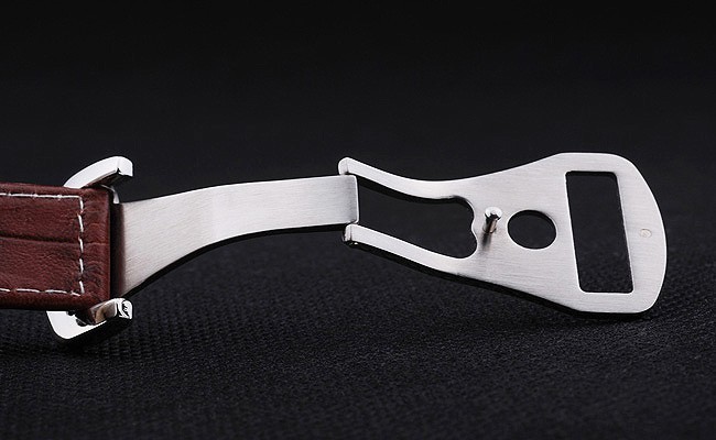 Bratara: Bratara: Curea de piele crocodilă maro cu coasere albă și logo-ul Omega Grograved Oțel inoxidabil Clădire