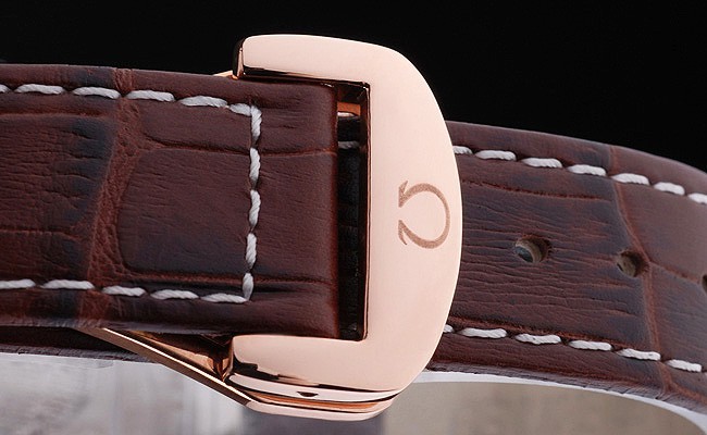 Caz: 18K Galben Gold Cutie < br> brățară: brățară de brățară de crocodil cu cusături albe și logo-ul Omega Gravate galben Gold cârlig-cataramă Clapetă