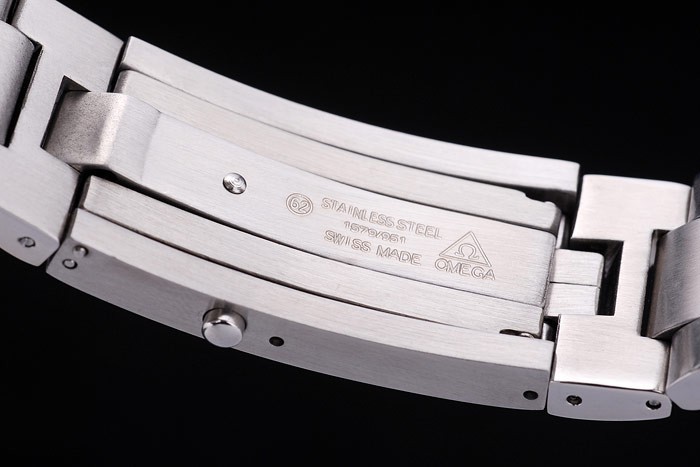 Crown: Coroana din oțel inoxidabil din oțel inoxidabil cu logo Omega plus o altă coroană similară pe versiunea opusă colțului superior