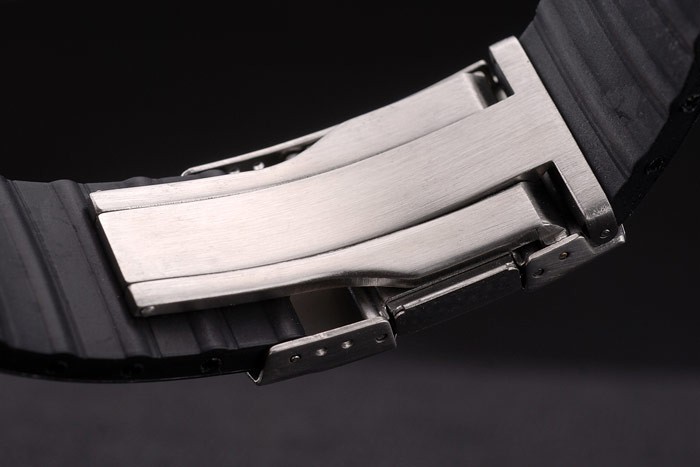 Bratara: oris de căldură curea de cauciuc negru cu oris gravat periat oțel inoxidabil oțel inoxidabil