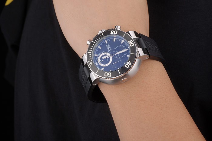 Bezel: Black email din oțel inoxidabil Bezel cu marcaje arabe și index Tipul benzii: Cauciuc
