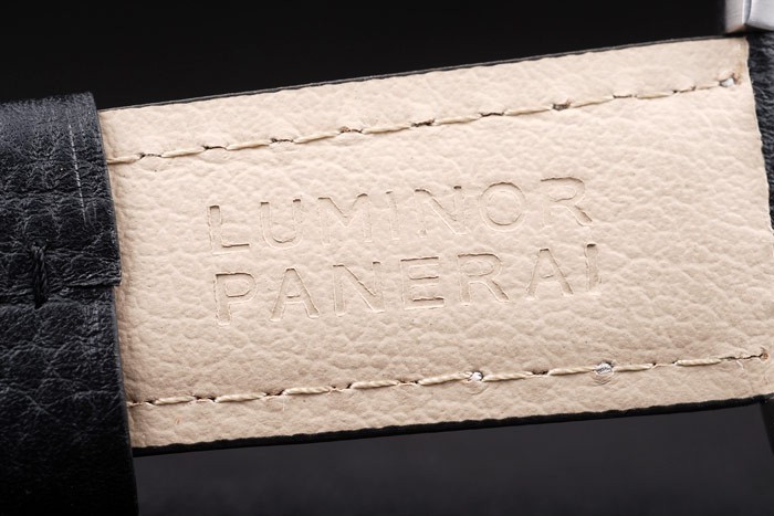 brățară: Cureaua de piele neagră cu coasere albă și căldură Luminor Embossed Panerai Ștampila și oțel inoxidabil cu oțel inoxidabil Clădire cu gravă Panerai