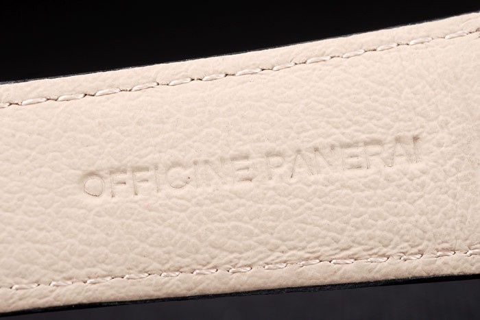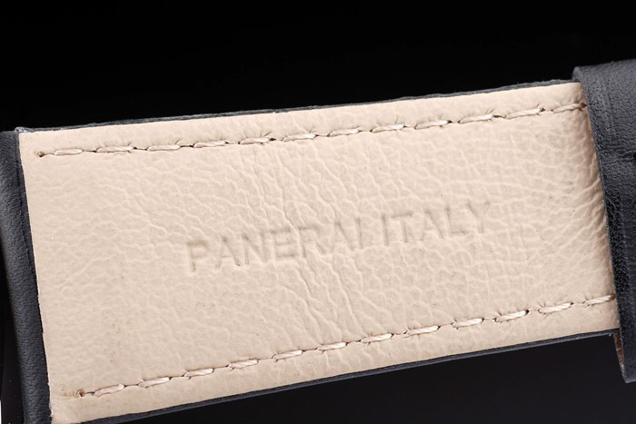 Brățară: Cureaua de piele neagră cu ateliere de cusătură albă și ateliere de căldură Panerai Italia Ștampila și oțel inoxidabil din oțel inoxidabil Clădire cu gravă Panerai