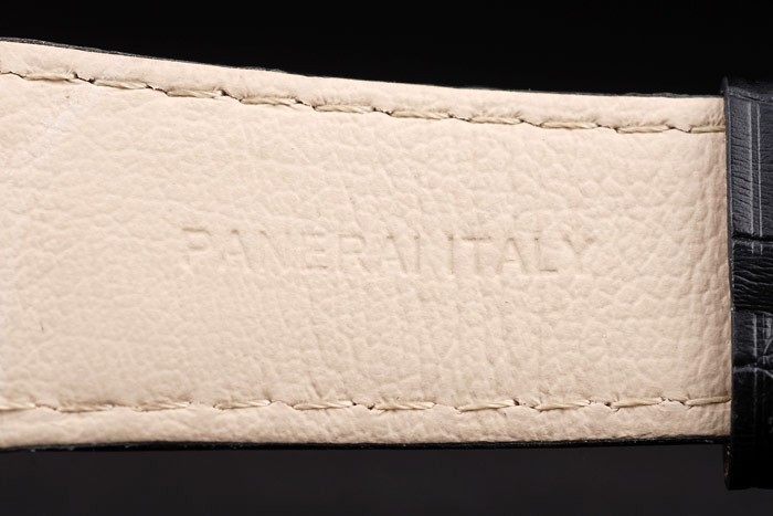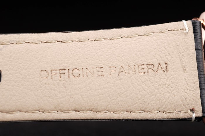 bratara: curea din piele de crocodil negru cu cusaturi albe și căldură gofrate Ateliere Panerai Italia timbru și 18k de trandafir placat cu aur incuietoare-cârlig cataramă cu Panerai gravura
